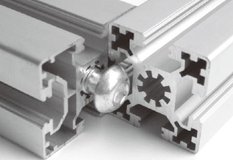 工業(yè)鋁型材框架一般采用內(nèi)部連接方式。均使用專用半圓頭螺栓,安裝前需要在型材連接處攻螺紋與打工藝安裝孔。為防止松動,便于重復(fù)拆卸,建議您選用12.9級強(qiáng)度合金鋼制作的專用半圓頭螺栓。
