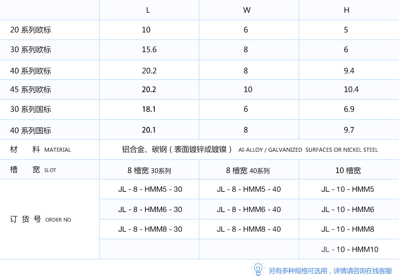 滑塊螺母安裝時需預塞至型材槽坑內,便于在型材上連接各種配件。