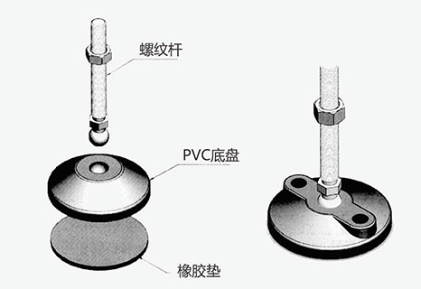 蹄腳是各種工業(yè)鋁型材支架及設備通用的配件,具有支撐、防震等作用,螺桿可調節(jié)高度。