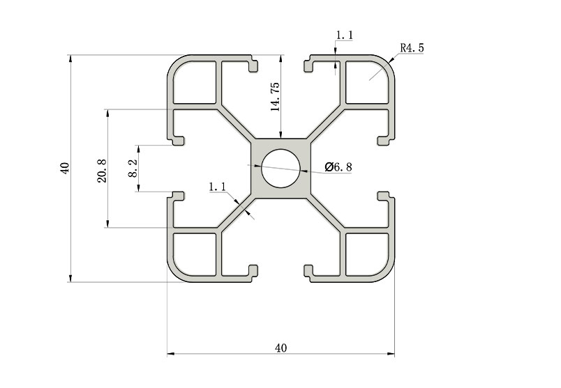 適用于應(yīng)力及強(qiáng)度較大的框架組合結(jié)構(gòu),它的外型采用圓角過渡,表面經(jīng)過陽極氧化處理,高雅美觀并抗腐蝕,它通常采用M8X20高強(qiáng)度專用螺栓加彈性扣件的內(nèi)部連接方式,堅(jiān)固而又可靠,是工業(yè)框架應(yīng)用較為廣泛的型材之一。